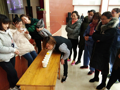 3月8日上午,在国际三八妇女节来临之际,为丰富节日期间广大女职工的业余文化生活,活跃节日气氛,展现公司广大女职工心系企业、爱岗敬业、健康向上、奋发有为的精神风貌,公司在办公楼前举办了庆“三八”健身娱乐比赛,近百名女职工参加了比赛。 本次活动共设立了定点投沙包、跳绳、踢毽子、木棍运球、水面吹球五个项目。经过参赛选手的激烈角逐,周玲等5人分别获得五个项目的一等奖,刘玲等10人获得二等奖,杜光艳等15人获得三等奖。工会主席王曙光代表公司向辛勤工作的广大女职工致以节日的问候,女工委员会主任赵新珍为在比赛中取得优秀成绩的女职工颁发了奖品。 本次活动,每位女职工不仅玩得兴高采烈,享受了节日的喜悦,更锻炼了身体,进一步增进了同事之间的交流,充分展现了女职工积极向上、团结奋进的精神风貌。图为比赛现场。
