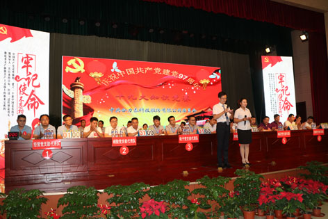 为庆祝建党九十七周年,推动我公司党的十九大精神学习教育活动深入开展,6月30日下午2:30,公司党委在联合会堂举办了十九大知识竞赛活动,晚上在联合会堂举办了庆祝建党九十七周年文艺晚会,淄博电子工程学校书记耿益民、县委组织部副部长张成华、县总工会副主席盛明泰、团县委副书记曾辉、县经信工委副书记公为友、沂源二中校长张成宝,公司领导和部分职工观看了晚会。 本次竞赛活动,公司党委各支部10个代表队,共30人参加了比赛。经过激烈角逐,最终,生产党支部代表队获得一等奖,后勤党支部代表队和机修原料党支部代表队获得二等奖,经营党支部代表队、硝酸党支部代表队、三胺党支部代表队获得三等奖。 晚上7:30,庆祝建党九十七周年文艺晚会在震撼人心的大合唱《东方红》中拉开了帷幕。淄博电子工程学校、沂源二中和公司参加演出的职工为大家表演了精彩的独唱、小合唱、民乐演奏、民族舞、配乐朗诵、鼓舞等节目,晚会结束时大型鼓舞《盛世欢歌》更是把晚会推向高潮。 通过开展本次知识竞赛和文艺晚会,把枯燥的理论知识和活泼的比赛形式结合起来,达到了以赛带学、以学促用的目的,充分调动了全体党员干部学习的自觉性和积极性。丰富多彩的文艺晚会丰富了广大职工的精神文化生活,提高了职工文化素养,激发了党员干部职工的爱国热情。