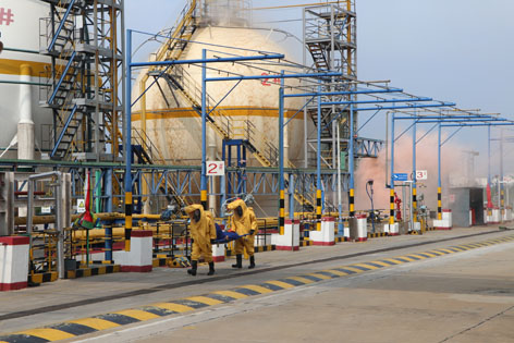 在公司应急救援指挥部的指挥下,经过组织侦检组、抢险救援组、医疗救护组、治安警戒组、环境检测组等应急人员的紧急救援处置,成功堵住了液氨泄漏源,中毒人员脱离生命危险,恢复了正常生产。公司2022年度生产安全事故综合应急救援演练圆满完成。