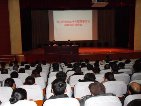 2014年12月12日下午2:30分,县宣讲团成员、县检察院助理检察员刘振同志来公司开展学习贯彻党的十八界四中全会精神宣讲报告会,公司部分领导、处室部门负责人及生产一线员工代表200余人参加了报告会,公司党委副书记王曙光主持了会议。