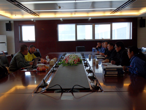 受智利国家铜矿公司委托,赫氏工程咨询(上海)有限公司的两名工程师3.26日至3.28日来我公司进行合格供方实地核查。智利国家铜矿公司(Corp Nacional del Cobre de Chile (Codelco—Chile))1976年4月1日在智利圣地亚哥组建,是智利最大的国有矿业企业。该公司控制了智利已知铜储量的70%,主要从事铜矿开采、选矿、冶炼和精炼业务,另外还回收各种副产品,特别是金、银、钼和金属合金。图为核查人员与公司相关人员座谈交流 (销售公司 房洪华)
