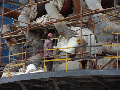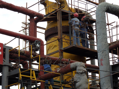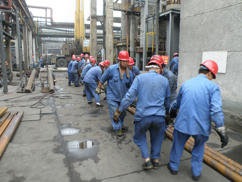 根据公司年度大修计划安排,合成车间、三胺二车间在5月末至6月初全系统停车进行了年度设备大修。至6月2日9:00合成车间大修主要检修项目检修完成,开始开车;6月6日9:55分三胺二车间尿素装置主要检修项目顺利完成,开始开车;6月9日三胺二车间三胺装置主要检修项目顺利完成,开始开车。至此,2015年度设备基本完成,各检修车间陆续进入开车阶段。图为检修现场
