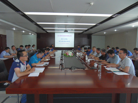 7月8日下午,公司常务副总李德军在公司办公楼三楼会议室主持召开了第三季度安全生产会议,公司安委会成员及新联化运输公司负责人、各制造部、车间、部门主要负责人参加了会议,县安监局安全监督员列席了会议。图为会议现场