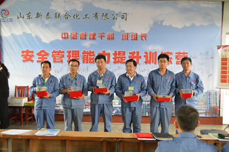 为提高公司中层管理人员的安全管理能力,新泰公司邀请建大安全技术有限公司的相关老师来公司进行安全管理专题培训。建大安全技术有限公司根据新泰公司管理现状采用咨询式安全培训的方式,主要对中层管理人员安全意识及观念转变进行培训强化,着重培养化工生产中科学的安全管理思维模式,经过建大公司两个多月的培训,新泰公司中层管理人员的安全管理技能提升明显,组织、协调及激励员工的能力有所提高,提升了中层管理人员整体综合管理素质。5月29日新泰公司“中层管理干部安全管理能力提升训练营”培训圆满结束,评选优秀学员7名,优秀团队1个。(图为:训练营颁奖现场)